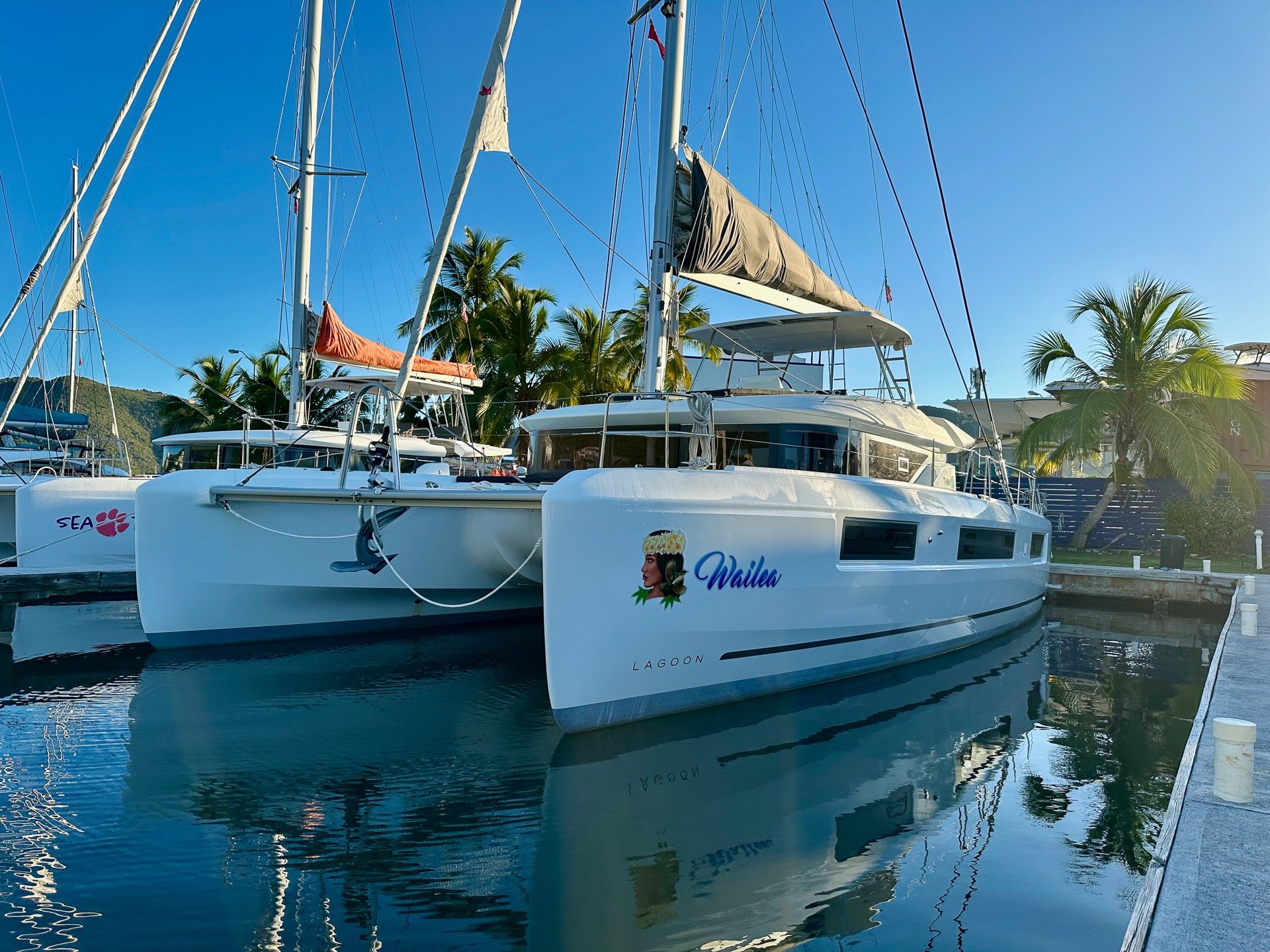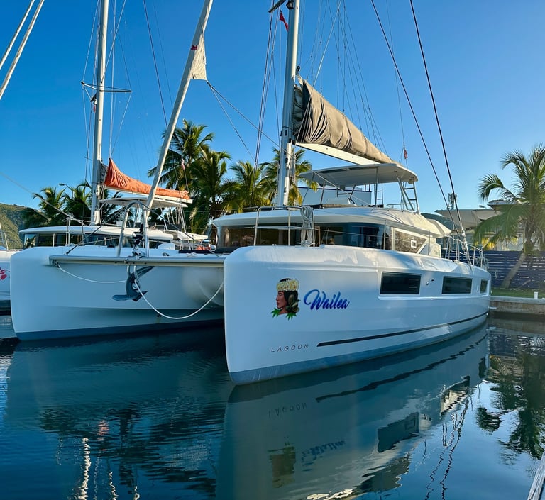 Wailea is berthed at Road Reef Marina, nestled in the heart of Road Town, Tortola, BVI near shopping and restaurants, with easy access to the Sir Francis Drake channel and the entire British Virgin Islands